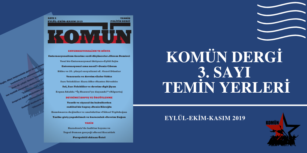 Komün Dergi emekçileri olarak Enternasyonalizm ve Dünya, Devrimci Kopuş ve Örgütlenme ile Tarih başlıklı dosyalardan oluşan üçüncü sayımızla sizlere merhaba diyoruz.